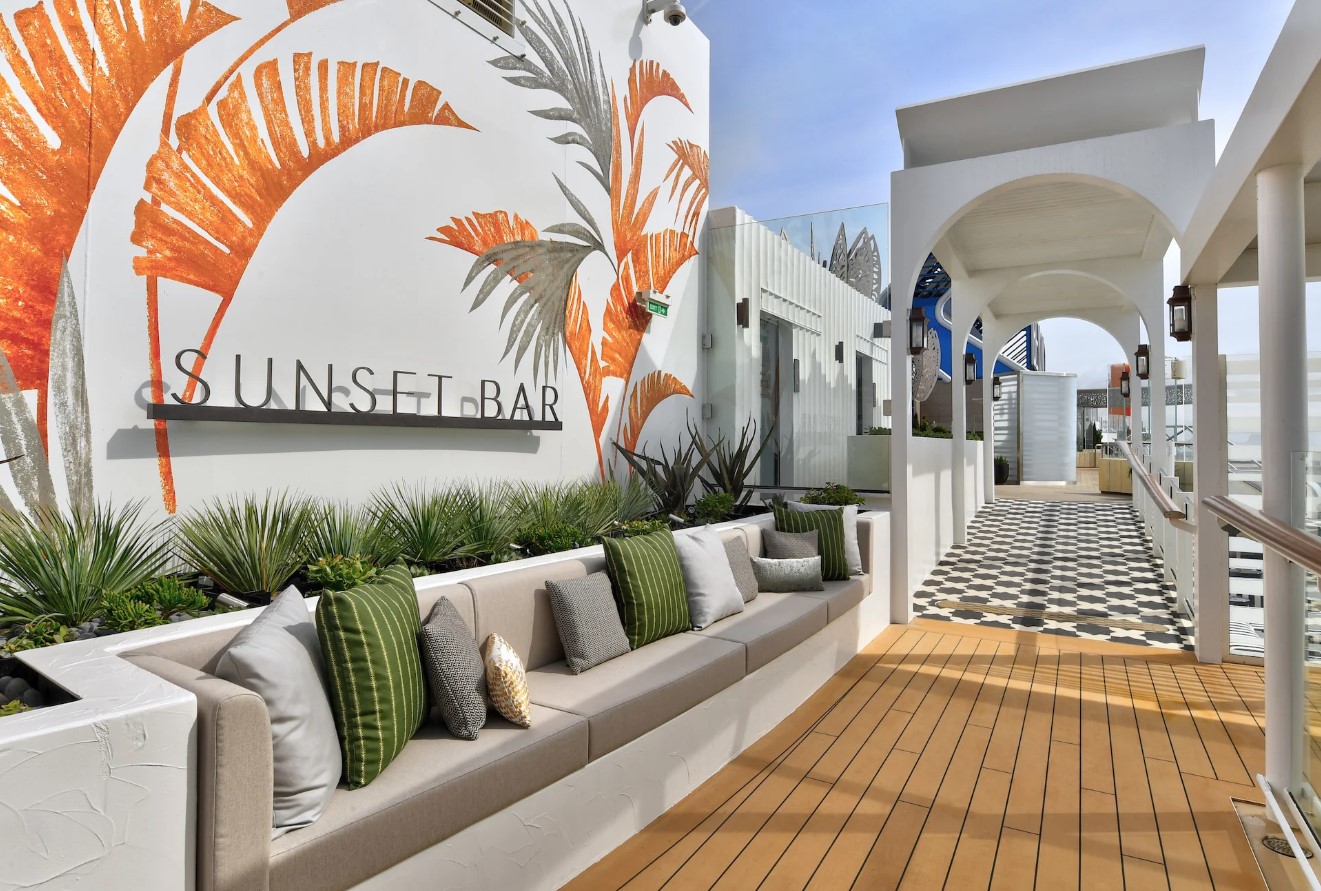 🌅 Sunset Bar : Bar panoramique conçu par Nate Berkus, parfait pour siroter un verre tout en profitant de vues spectaculaires.